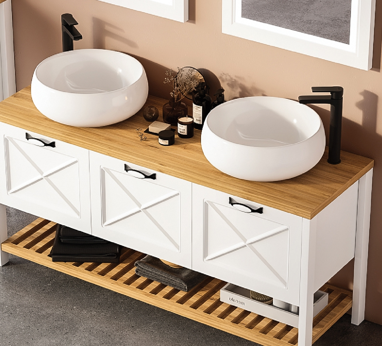 Murano Series – 140 PRODUCT FEATURES Series Design Details Drawers and doors with thermoform coating Soft close doors and drawers Ceramic basin + Glass countertop LED mirror Color options White/Teak, Black/Teak See the Product Blueprint → Click the PDF now! Get Connected 07826954253 allforbathroomkitchenuk@gmail.com